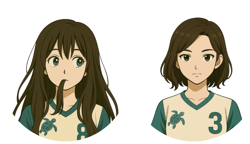 Marina es pura energía: extrovertida, divertida y capaz de volver memorable cualquier momento. Siempre tiene un plan —bueno o no— y un comentario que rompe la tensión. Leal y constante, sostiene al grupo con su humor y su presencia, especialmente a su hermana.